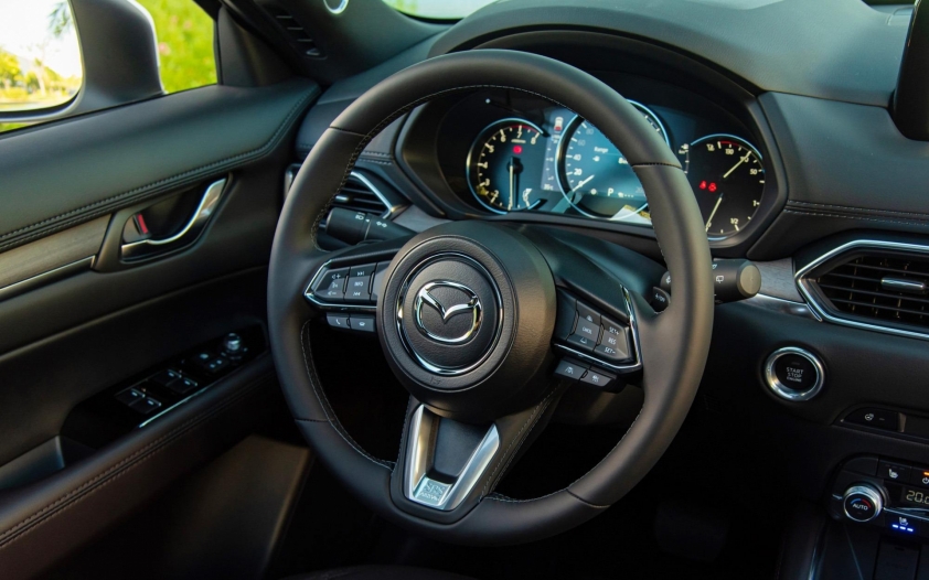 Đồng hồ sau vô-lăng của Territory hiện đại hơn với màn hình kỹ thuật số toàn phần 12,3 inch, trong khi CX-5 chỉ dừng ở mức 7 inch kết hợp analog.