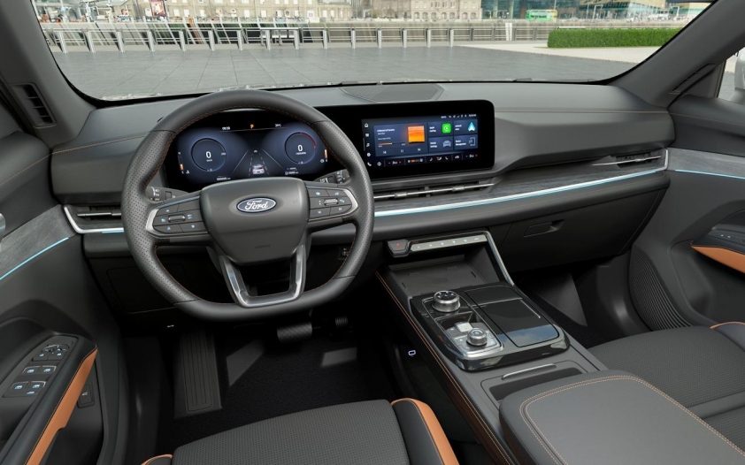 Hệ thống giải trí cũng cho thấy sự khác biệt: Territory sở hữu màn hình 12,3 inch hỗ trợ Apple CarPlay/Android Auto không dây, còn CX-5 trang bị màn hình 8 inch, kết nối có dây.