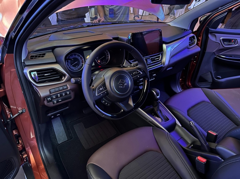 Bên trong khoang lái, Suzuki Fronx được thiết kế hướng đến sự tiện dụng và trẻ trung. Vô-lăng ba chấu tích hợp phím điều khiển, bảng đồng hồ kết hợp màn hình kỹ thuật số. Phiên bản GLX và GLX Plus được trang bị màn hình trung tâm cảm ứng 9 inch, hỗ trợ Apple CarPlay và Android Auto, dàn âm thanh 6 loa và khởi động nút bấm.