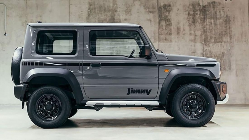 Đặc biệt, Suzuki Jimny Horizon chỉ có duy nhất một màu sơn Xám Ánh Kim (Medium Gray) kết hợp với bộ tem màu đen.