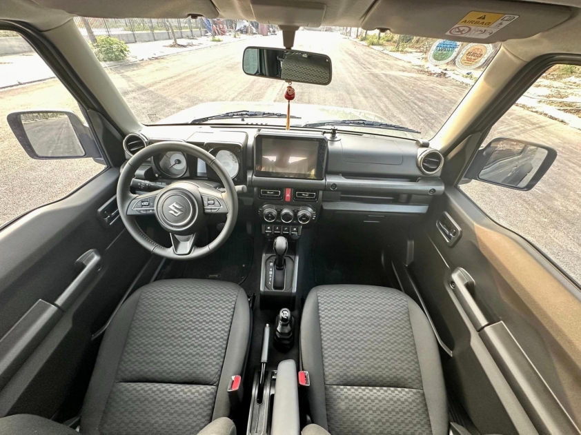 Về trang bị, Suzuki Jimny sở hữu các tiện ích cơ bản nhưng nổi bật như đèn LED trước/sau, la-zăng hợp kim 15 inch, lốp dự phòng nằm giữa cửa cốp, vô-lăng 3 chấu, bảng đồng hồ analog, điều hòa tự động một vùng, và hệ thống giải trí với màn hình 7 inch hỗ trợ Apple CarPlay/Android Auto, khe thẻ nhớ SD, cổng USB và kết nối Bluetooth với 2 loa.