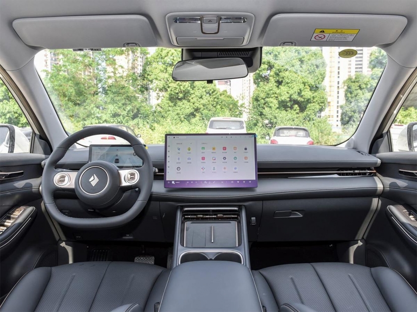 Không gian bên trong Baojun Yunhai được thiết kế theo xu hướng số hóa, tập trung vào trải nghiệm người dùng. Trung tâm bảng táp-lô là màn hình cảm ứng kích thước 15,6 inch đặt nổi, kết hợp với bảng đồng hồ kỹ thuật số 8,8 inch phía sau vô-lăng dạng D-cut hai chấu.