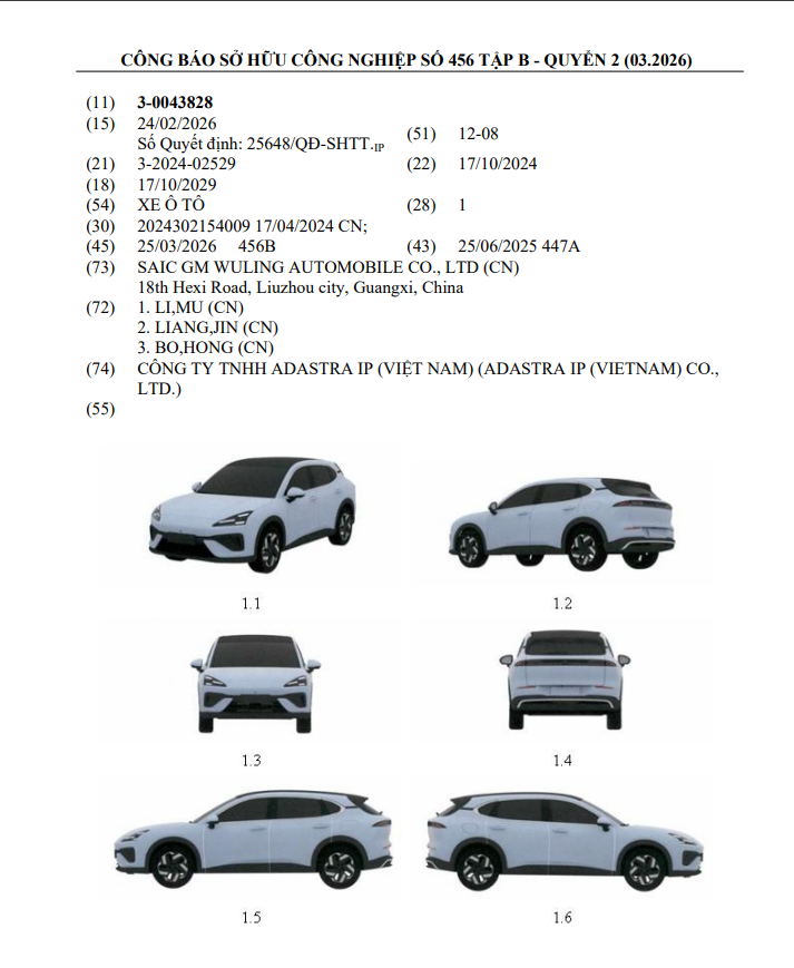 Thông tin từ công báo sở hữu công nghiệp mới nhất cho thấy liên doanh GM - SAIC - Wuling đã đăng ký bảo hộ một mẫu SUV mới tại Việt Nam, được xác định là Baojun Yunhai.