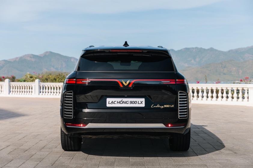 Ở phía sau, dòng chữ "Lạc Hồng 900 LX" cùng logo mạ vàng xuất hiện trên cốp xe, trong khi cụm đèn hậu LED được thiết kế liền mạch, kéo dài toàn chiều ngang. Hai khe gió giả hai bên được phối các nan song song đồng điệu với thiết kế phía trước.