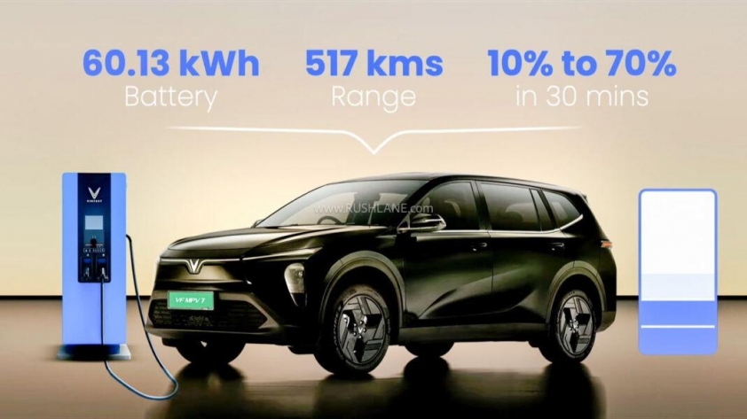 Không chỉ tập trung vào không gian, VF MPV 7 còn gây ấn tượng với hệ thống truyền động điện mạnh mẽ. Xe sử dụng pin lithium-ion dung lượng 60,13 kWh, cho phép di chuyển tối đa 517 km sau mỗi lần sạc đầy theo tiêu chuẩn chứng nhận của Ấn Độ (ARAI). Đây là con số đáng chú ý trong phân khúc MPV điện, đặc biệt khi xét đến kích thước và khả năng chở đủ 7 người.