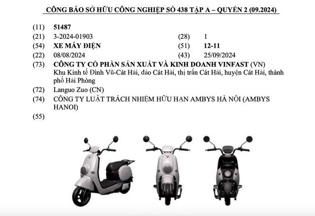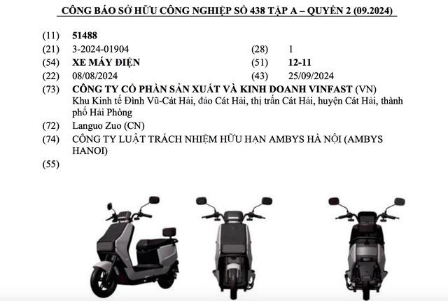 Cụ thể, trong Công báo Sở hữu công nghiệp, tập A, quyển 2 được Cục Sở hữu trí tuệ Việt Nam công bố vào tháng 09/2024 đã xuất hiện hình ảnh về hai mẫu xe máy điện mới mang nhãn hiệu VinFast.