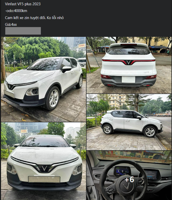 Trên thị trường xe cũ hiện nay, một chiếc VinFast VF 5 Plus sản xuất năm 2023 đang được chào bán với mức giá khoảng 400 triệu đồng.