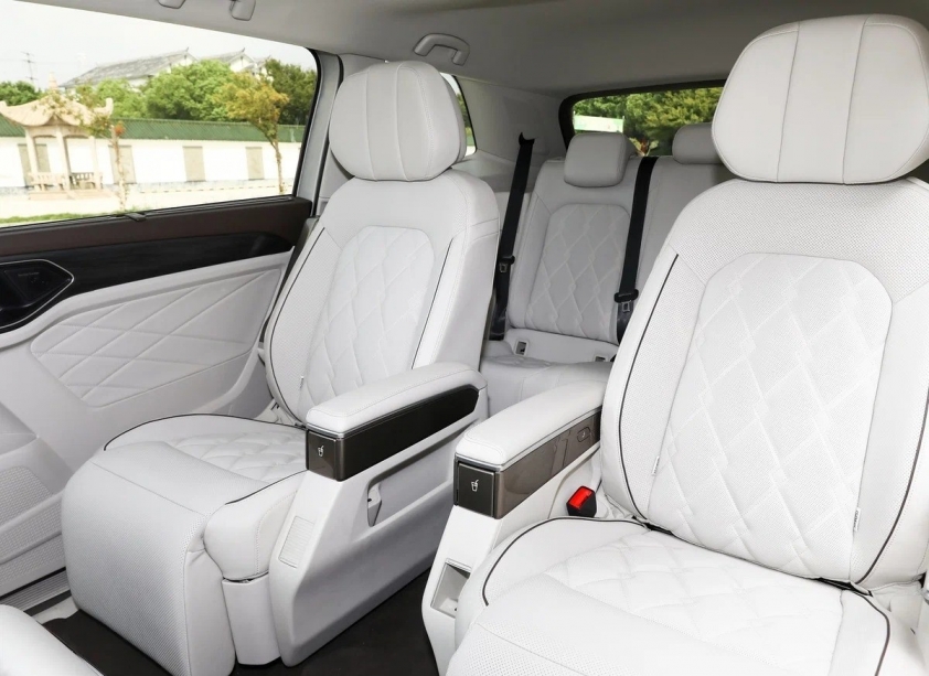 Đoạn video gần 2 phút cũng cho thấy nội thất Volkswagen Viloran sáng màu, toàn bộ ghế ngồi đều được bọc da thêu họa tiết kiểu kim cương. Bên cạnh đó, một số chi tiết ốp vân gỗ và ốp kim loại sang trọng.