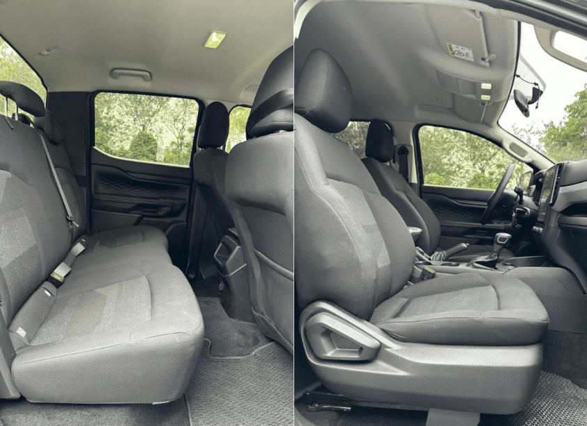 Bên trong khoang lái, Ford Ranger 2.2AT XLS 2022 sở hữu cấu hình 5 chỗ ngồi với ghế bọc nỉ, ghế lái chỉnh cơ.
