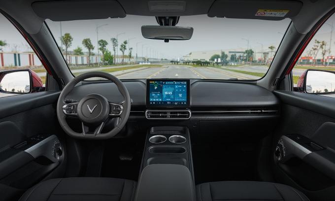 Không gian cabin của VF MPV 7 duy trì phong cách thiết kế giống Limo Green, nhưng có một số điều chỉnh để tăng tính tiện dụng. Thay vì cụm núm xoay cần số đặt ở khu vực yên ngựa như bản dịch vụ, phiên bản MPV 7 thay bằng một hộc chứa đồ dạng oval. Cần số được chuyển lên phía sau vô-lăng, giúp khu vực trung tâm thông thoáng hơn.