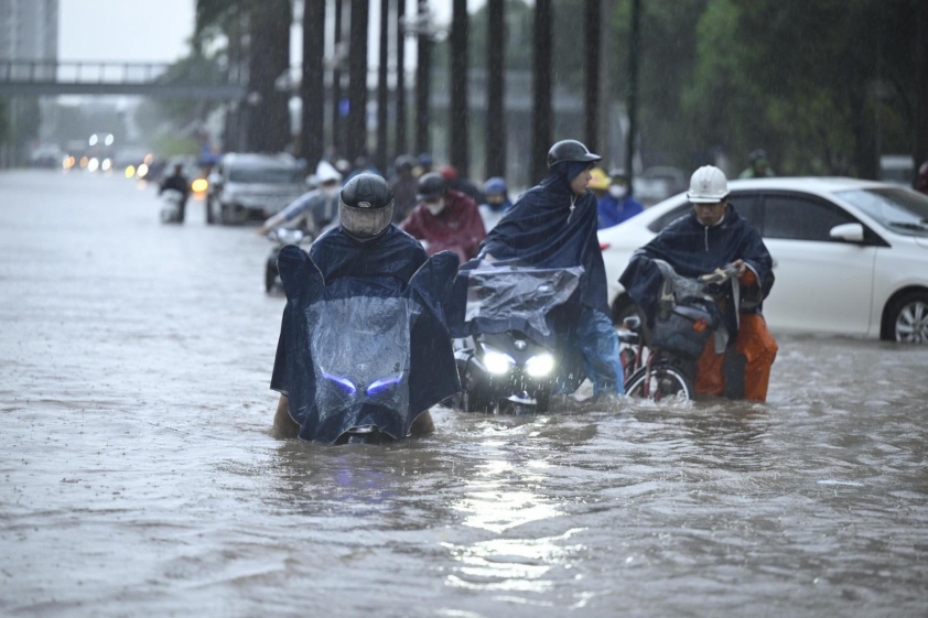 Những đợt mưa lớn kéo dài do bão Matmo và các nhiễu động thời tiết đã khiến nhiều tuyến đường ở miền Bắc bị ngập sâu, có nơi nước lên tới nửa bánh xe máy.