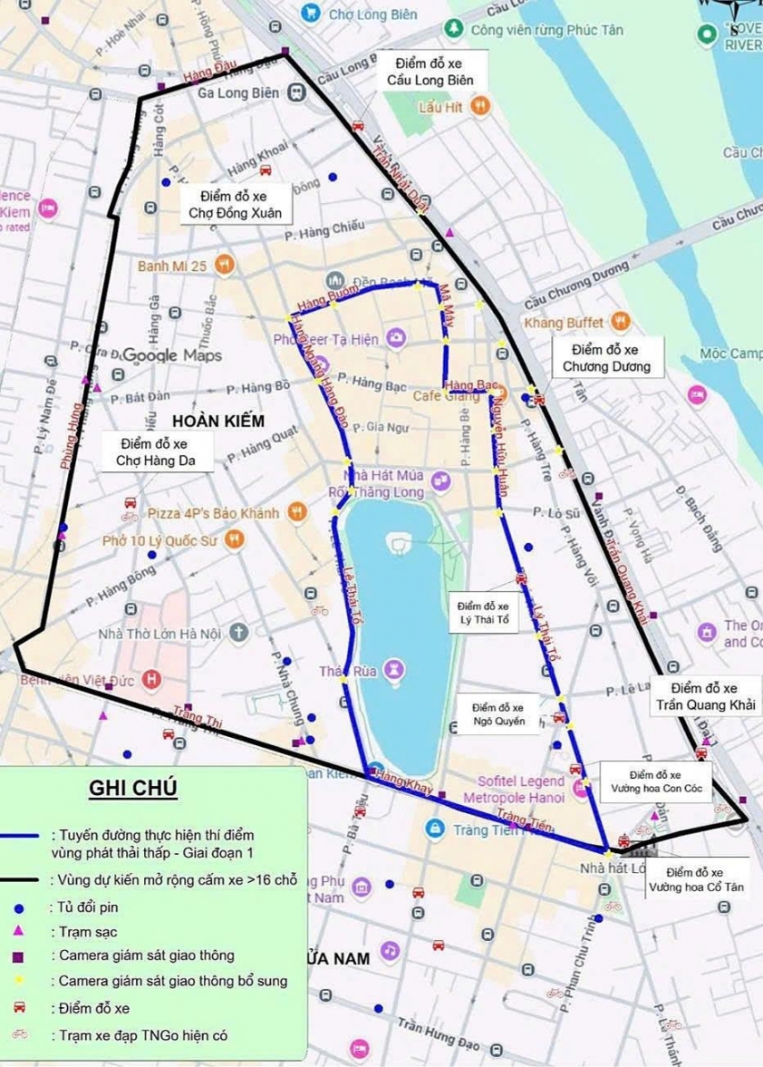 Giai đoạn đầu kéo dài từ ngày 1/7/2026 đến hết năm 2026, phường Hoàn Kiếm được chọn làm khu vực thử nghiệm mô hình vùng phát thải thấp. Khu vực này được chia thành hai phần gồm vùng lõi và vùng đệm với phạm vi kiểm soát khác nhau.