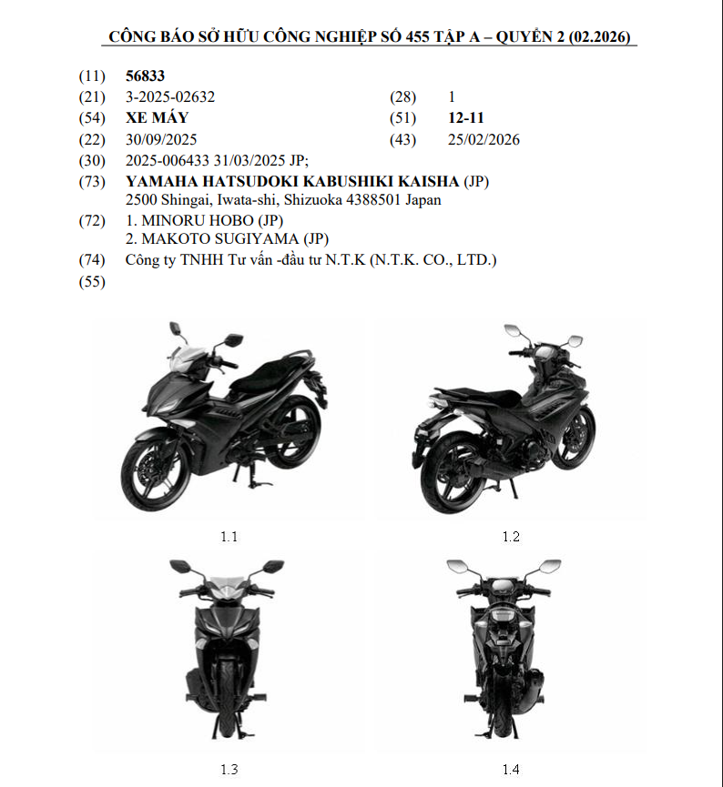 Thông tin từ Công báo sở hữu công nghiệp phát hành tháng 2/2026 cho biết Yamaha đã nộp hồ sơ đăng ký bảo hộ kiểu dáng cho một mẫu xe máy hoàn toàn mới. Dù tài liệu không ghi rõ tên sản phẩm, các chi tiết thiết kế trong hồ sơ cho thấy đây nhiều khả năng là phiên bản nâng cấp của dòng Exciter.