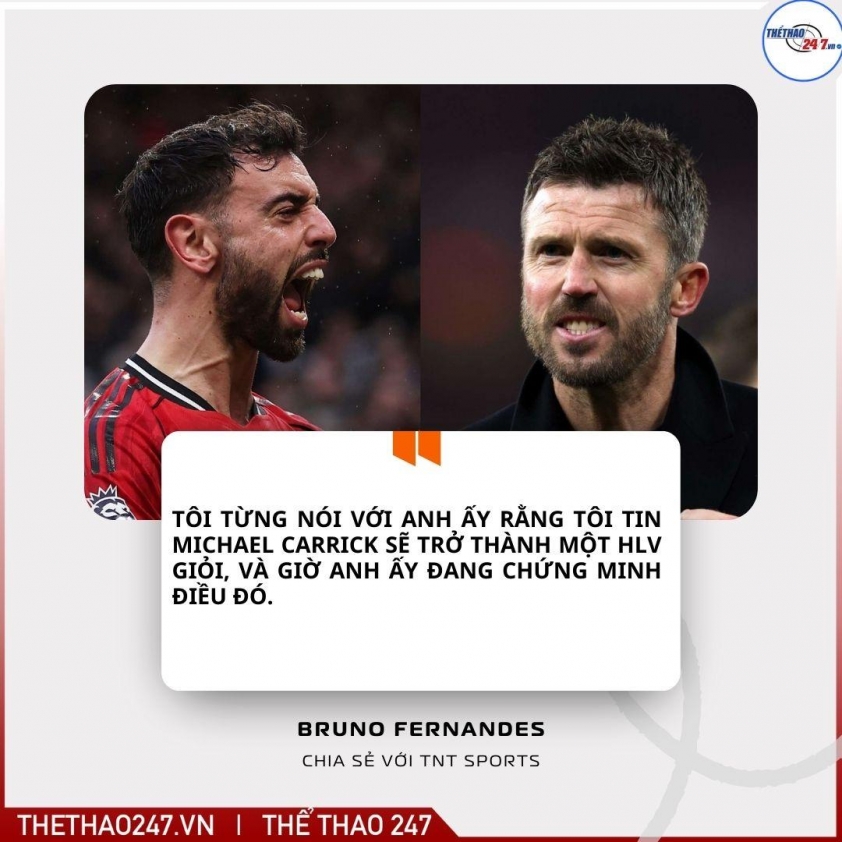 Carrick được bổ nhiệm thay thế Ruben Amorim vào tháng trước với bản hợp đồng tạm thời đến hết mùa. Tuy nhiên, những gì Man United thể hiện đã vượt xa kỳ vọng. Fernandes tiết lộ thêm: “Michael đến với những ý tưởng đúng đắn, trao trách nhiệm cho các cầu thủ và rất giỏi trong cách truyền đạt. Tôi từng nói với anh ấy rằng tôi tin Michael sẽ trở thành một HLV giỏi, và giờ anh ấy đang chứng minh điều đó.”