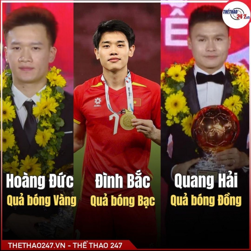 Đêm Gala Quả bóng vàng Việt Nam 2025 diễn ra tối 26/12 đã khép lại với tâm điểm là chiến thắng của Nguyễn Hoàng Đức. Lần thứ ba được xướng tên ở hạng mục cao quý nhất, tiền vệ sinh năm 1998 tiếp tục khẳng định vị thế ngôi sao hàng đầu của bóng đá Việt Nam. Đình Bắc về nhì đầy tiếc nuối, trong khi Nguyễn Quang Hải giành Quả bóng đồng.