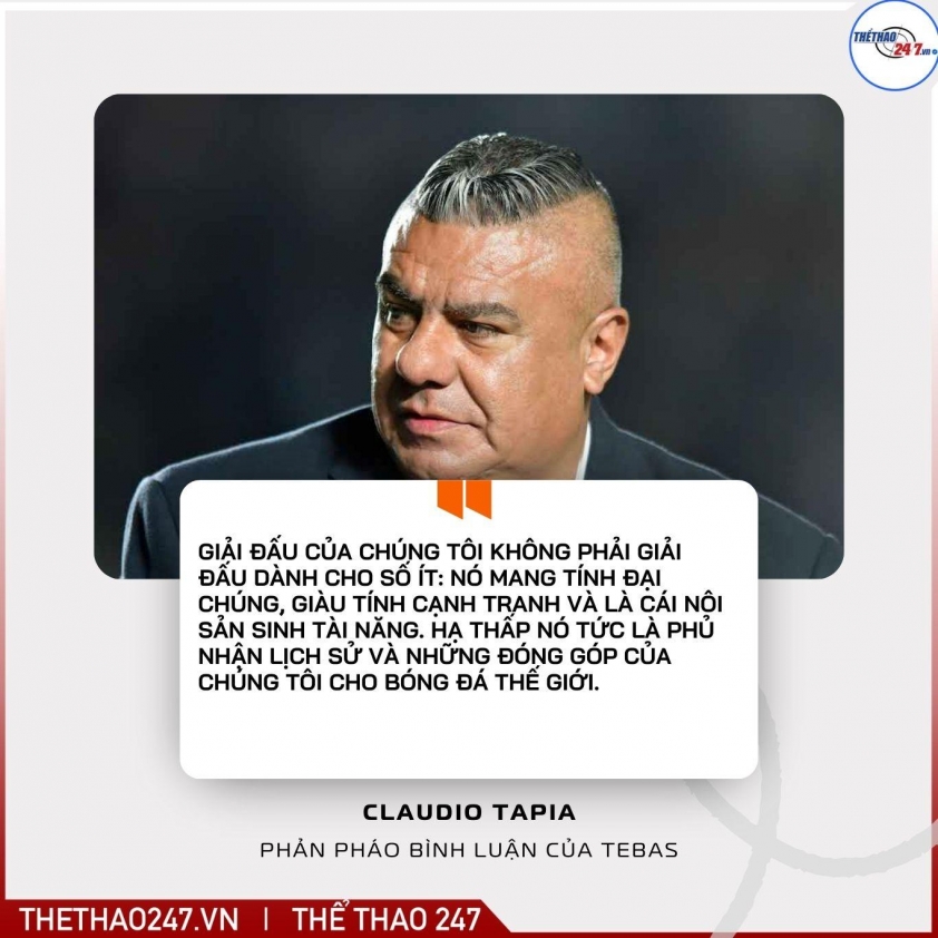 Ông Tapia sau đó nhắm thẳng vào Tebas: “Còn có thể mong đợi điều gì hơn khi ông từng chỉ trích Club World Cup?” Bình luận này ám chỉ lời phê phán trước đó của Tebas về FIFA Club World Cup trước khi giải đấu khởi tranh.