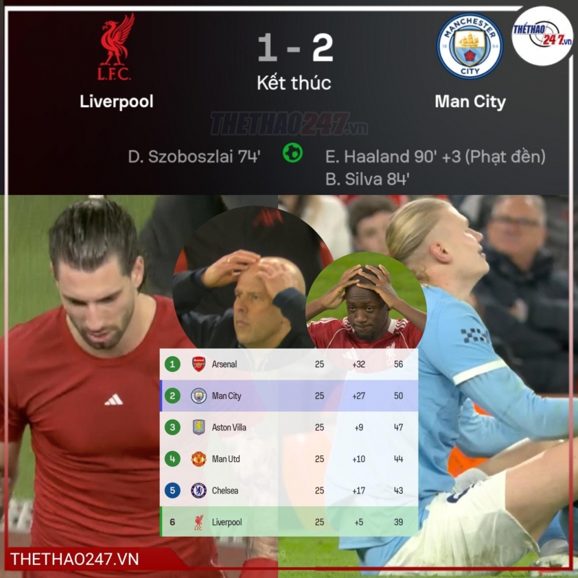 Pha bóng trở thành cuộc đua tốc độ giữa Szoboszlai và Haaland. Tiền vệ Liverpool cố kéo người để ngăn đối thủ, nhưng bóng vẫn từ từ lăn qua vạch vôi, thổi bùng ăn mừng của các cầu thủ Man City. Tuy nhiên, trọng tài Craig Pawson được VAR mời ra màn hình và quyết định hủy bàn thắng, do Haaland đã kéo áo Szoboszlai sau tình huống phạm lỗi ban đầu của cầu thủ Liverpool.