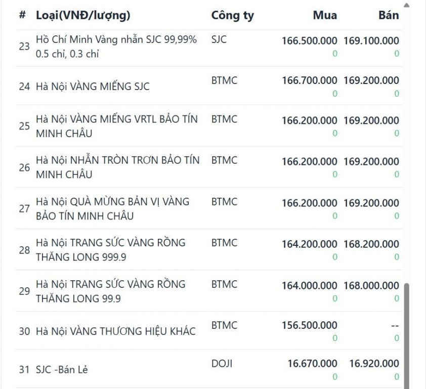 Riêng hệ thống Mi Hồng có mức giá mua vào cao hơn, đạt 167,7 triệu đồng/lượng, trong khi giá bán ra vẫn ở 169,2 triệu đồng/lượng, tương ứng mức giảm nhẹ hơn là 600.000 đồng/lượng.