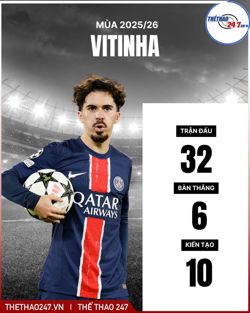 Real Madrid đánh giá cao khả năng điều tiết nhịp độ, kết nối tuyến trên của Vitinha. Mùa này, tiền vệ người Bồ ghi 6 bàn và có 10 kiến tạo sau 32 trận, những con số đủ sức bảo chứng cho khoản đầu tư lớn.