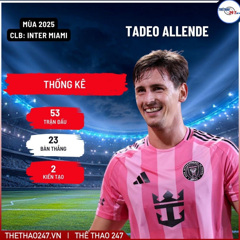 Với 29 bàn thắng và 16 kiến tạo sau 28 trận, Messi tỏa sáng rực rỡ suốt giai đoạn vòng loại. Nhưng ở vòng play-offs, Tadeo Allende mới là mũi nhọn ghi bàn bùng nổ còn lại của Miami. Giờ đây, khi hợp đồng cho mượn sẽ hết hạn vào tháng 12/2025, tương lai của tiền đạo người Argentina trở thành mối lo ngại lớn trong kế hoạch dài hạn của đội bóng.