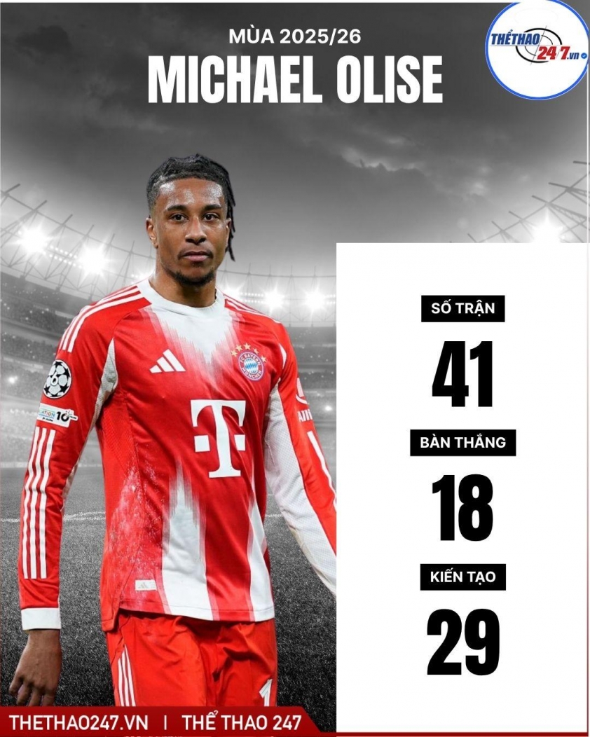 Về phía Bayern Munich, họ xem Michael Olise là nhân tố quan trọng trong kế hoạch dài hạn. Phong độ ổn định cùng tiềm năng phát triển lớn khiến cầu thủ người Pháp trở thành trụ cột không thể thay thế trong đội hình.