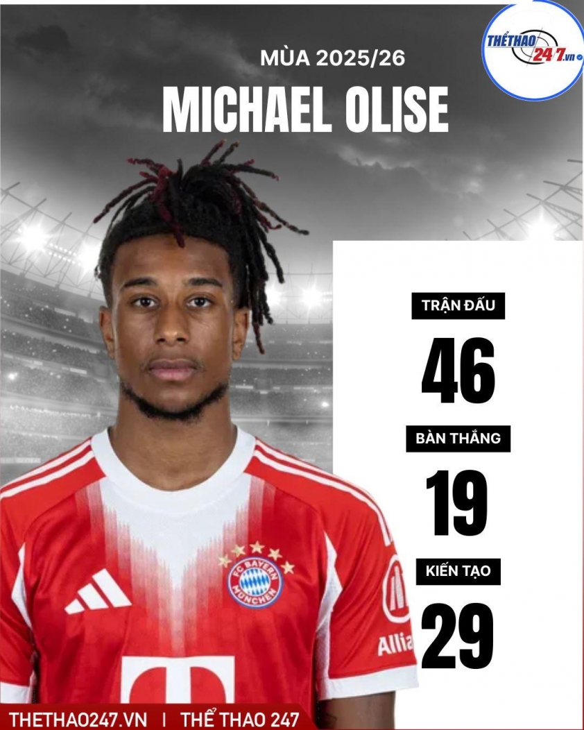 Cầu thủ chạy cánh người Pháp đang nổi lên như một trong những tài năng sáng giá nhất châu Âu. Kể từ khi gia nhập Bayern, Olise đã có bước tiến vượt bậc, gây ấn tượng mạnh với khả năng đi bóng, sáng tạo và tạo ảnh hưởng trực tiếp lên lối chơi tấn công. Không chỉ đóng góp bằng bàn thắng và kiến tạo, anh còn liên tục tạo ra lợi thế chiến thuật cho đội bóng xứ Bavaria.
