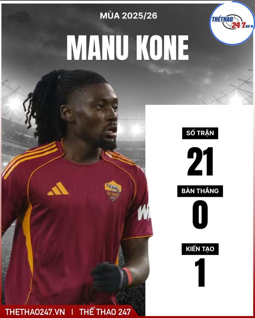 Tiền vệ tuyển Pháp Manu Koné đã trở thành mắt xích quan trọng của AS Roma kể từ khi gia nhập đội bóng vào mùa hè năm ngoái. Phong độ ấn tượng của anh nhanh chóng thu hút sự quan tâm của các tuyển trạch viên trên khắp châu Âu. Trong những tháng gần đây, Koné được liên hệ với hàng loạt ông lớn của lục địa già, tuy nhiên Manchester United hiện nổi lên là ứng viên hàng đầu trong cuộc đua giành chữ ký của tiền vệ này vào năm 2026, trong bối cảnh đội chủ sân Old Trafford đang ráo riết tìm kiếm một tiền vệ trung tâm mới.