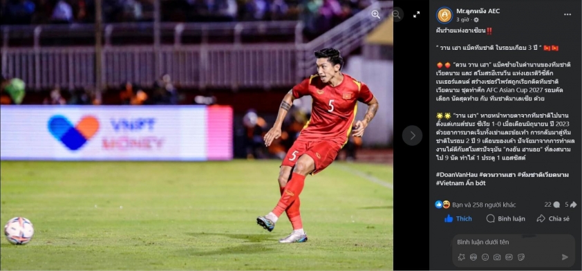 Trang này cũng dành nhiều lời khen cho hậu vệ sinh năm 1999, gọi anh là “hậu vệ trái huyền thoại của tuyển Việt Nam”, từng thi đấu tại châu Âu trong màu áo Heerenveen và là nhân tố quan trọng trong đội hình.
