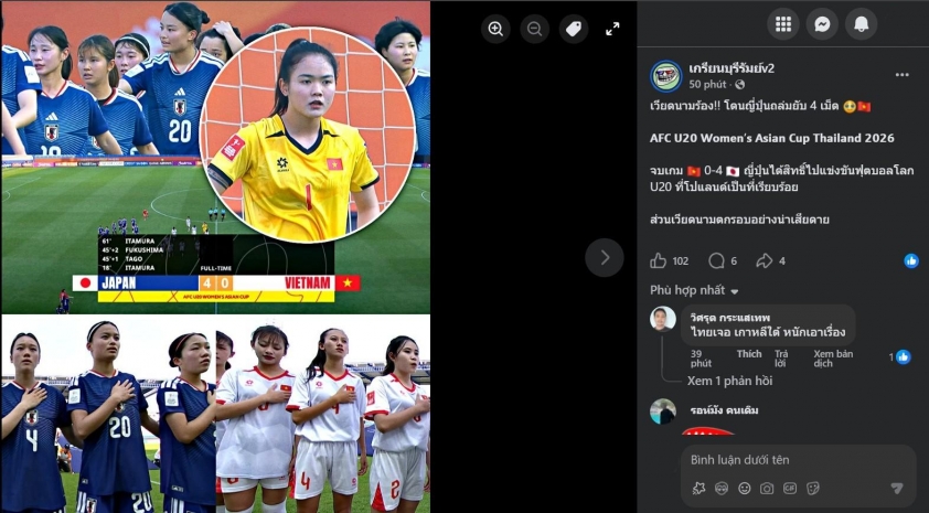 Chiều 11/4 (giờ Việt Nam), U20 nữ Việt Nam đã chính thức nói lời chia tay giấc mơ World Cup sau thất bại 0-4 trước U20 nữ Nhật Bản tại tứ kết giải U20 nữ châu Á 2026. Kết quả này không chỉ gây tiếc nuối cho người hâm mộ trong nước mà còn thu hút sự chú ý lớn từ truyền thông khu vực, đặc biệt là Thái Lan.