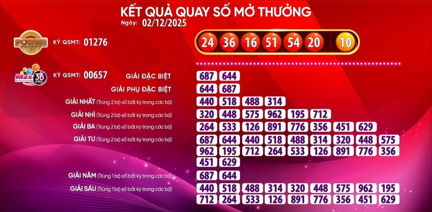 Vietlott 2/12/2025 - Kết quả xổ số Vietlott Power 6/55 ngày 2/12/2025