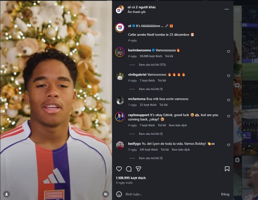 Theo RMC Sport, bài đăng trên Instagram của Lyon thông báo về sự xuất hiện của Endrick đã thu hút hơn 17 triệu lượt xem, trở thành nội dung được quan tâm nhiều nhất trong lịch sử CLB. Trước đó, kỷ lục thuộc về đoạn video giới thiệu Tyler Morton khi anh gia nhập từ Liverpool hồi mùa hè, với chưa đến 3 triệu lượt xem. Nếu Endrick tỏa sáng trong màu áo đội bóng Pháp, nhiều cột mốc mới hoàn toàn có thể tiếp tục bị xô đổ trong những tuần và tháng tới.