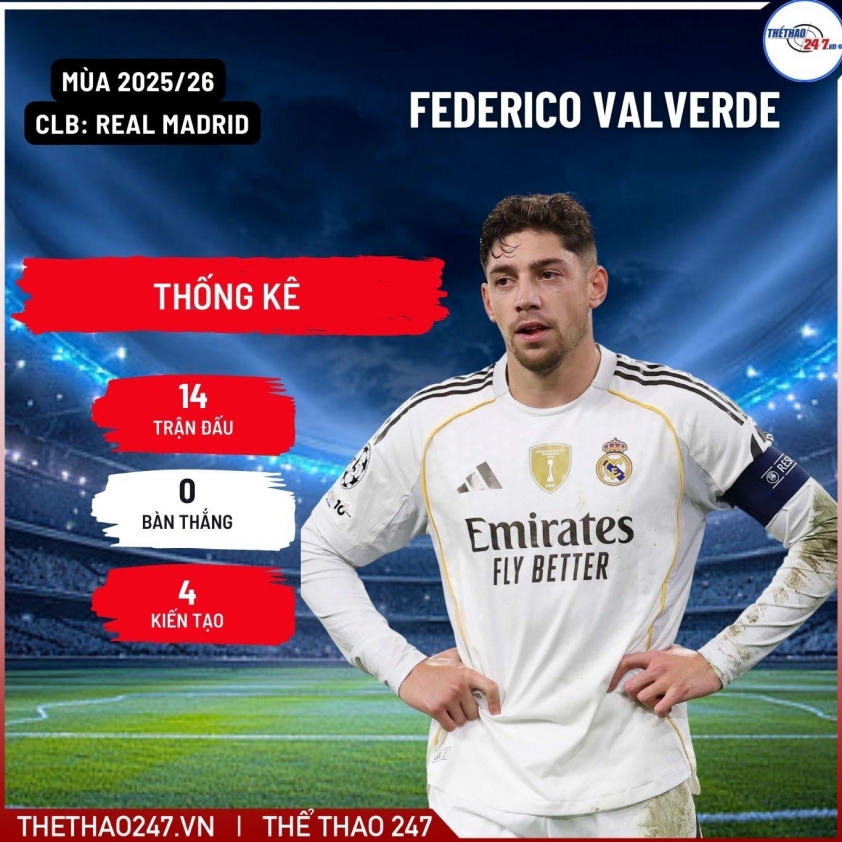 Tương lai của Valverde tại Real Madrid đang bị đặt dấu hỏi lớn sau mâu thuẫn với HLV Xabi Alonso, theo The Mirror, và việc ra đi là hoàn toàn khả thi trong bối cảnh nhận được sự quan tâm từ nhiều CLB lớn khắp châu Âu.