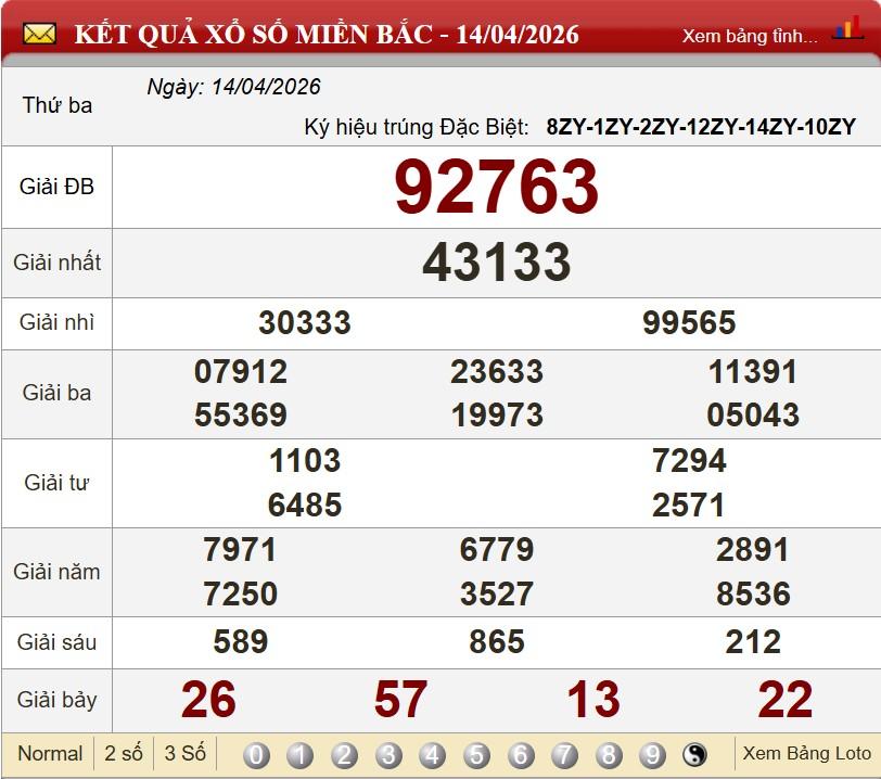 Kết quả xổ số miền Bắc (XSMB) hôm nay ngày 14/4