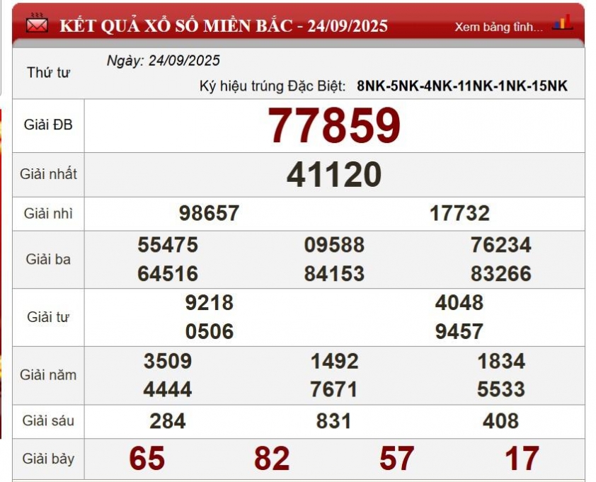 XSMB 24/9/2025 - Kết quả xổ số miền Bắc hôm nay 24/9/2025