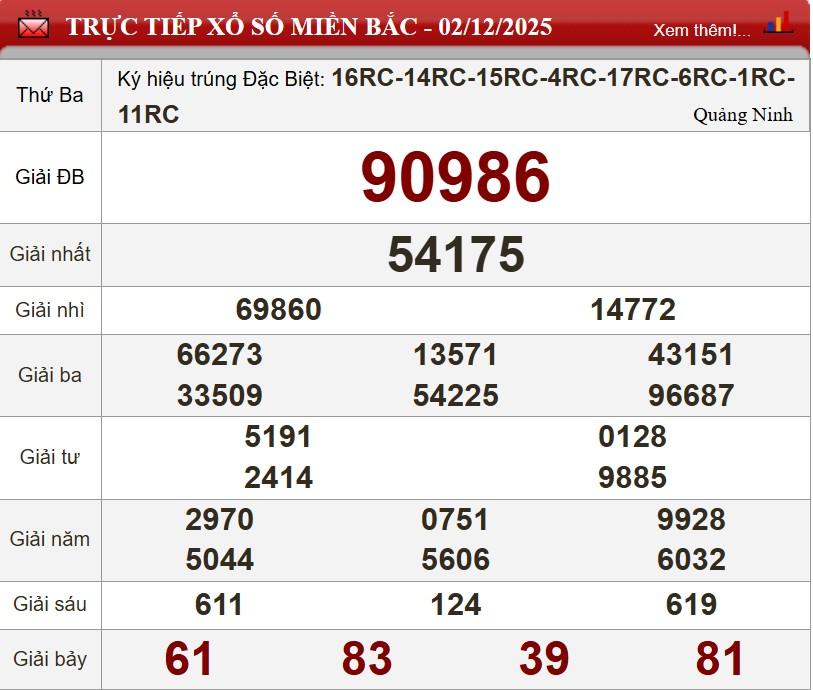 Kết quả xổ số miền Bắc (XSMB) hôm nay ngày 2/12