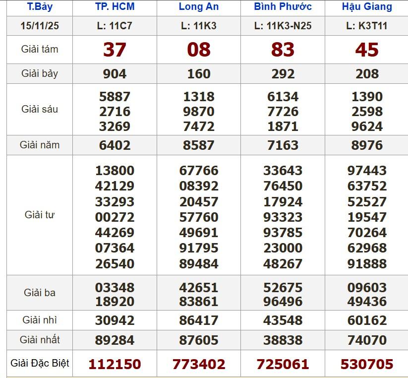 XSMN 15/11/2025 - Kết quả xổ số miền Nam hôm nay 15/11/2025