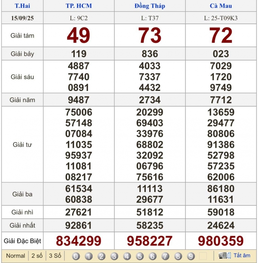 XSMN 15/9/2025 - Kết quả xổ số miền Nam hôm nay 15/9/2025