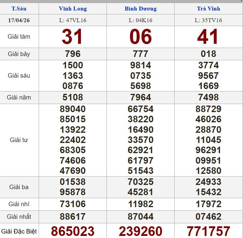 XSMN 17/4/2026 - Kết quả xổ số miền Nam hôm nay 17/4/2026