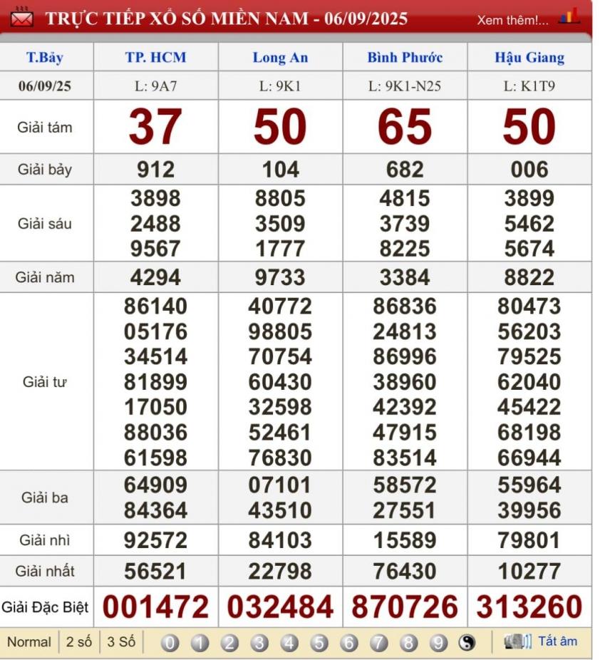 Kết quả xổ số miền Nam (XSMN) ngày 6/9