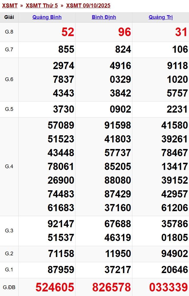 Kết quả xổ số miền Trung (XSMT) ngày 9/10