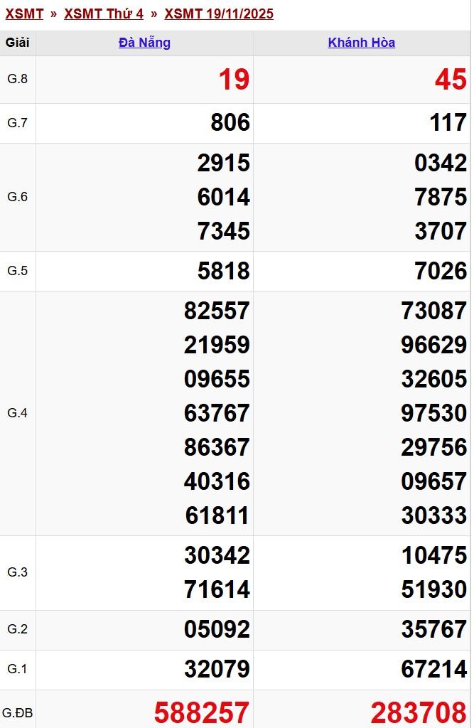 Kết quả xổ số miền Trung (XSMT) hôm nay ngày 19/11