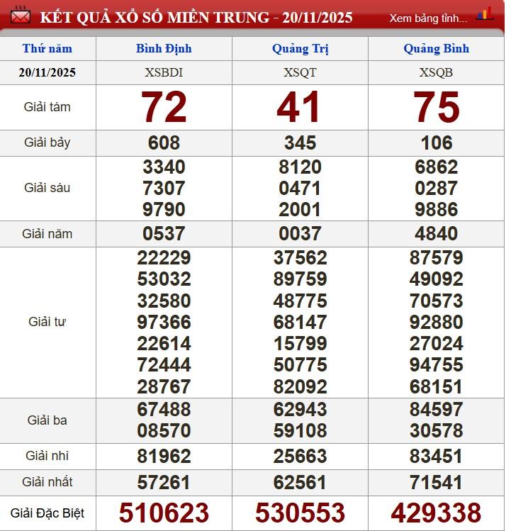 XSMT 20/11/2025 - Kết quả xổ số miền Trung hôm nay 20/11/2025