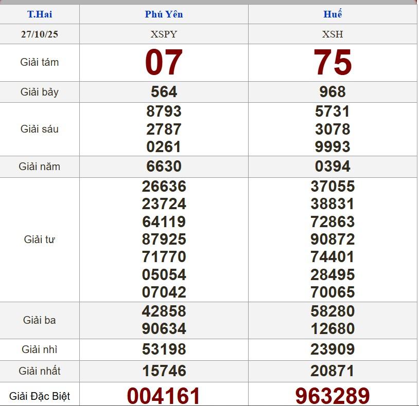 Kết quả xổ số miền Trung (XSMT) hôm nay ngày 27/10