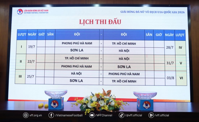Sáng 28/4, tại trụ sở Liên đoàn Bóng đá Việt Nam (LĐBĐVN) đã diễn ra lễ bốc thăm xếp lịch thi đấu Giải bóng đá U16 nữ VĐQG 2026 theo hình thức trực tuyến. Đại diện 4 đội bóng tham dự giải đã theo dõi buổi lễ thông qua kết nối trực tuyến.
