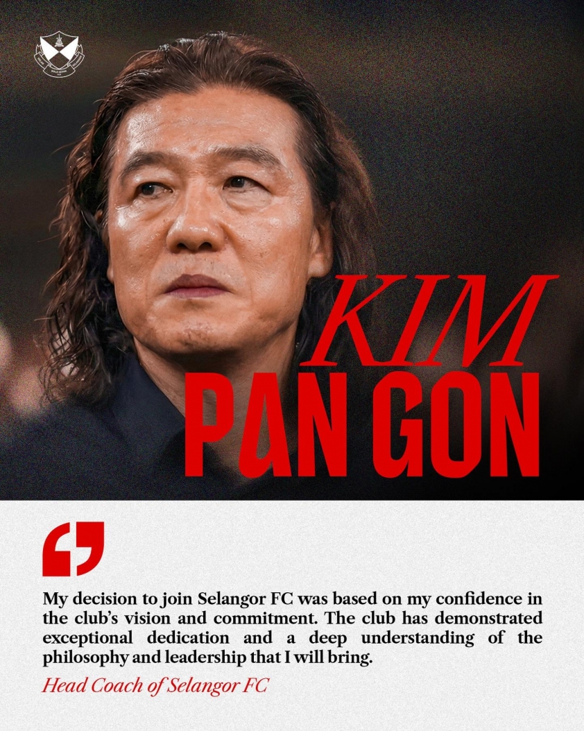 Trong thông báo trên trang chủ, Selangor nhấn mạnh: “Với bề dày kinh nghiệm cùng những thành tựu đã được kiểm chứng, Kim Pan Gon được kỳ vọng sẽ hoàn thành tốt nhiệm vụ dẫn dắt đội một và giúp Red Giants chinh phục những cột mốc mới.”