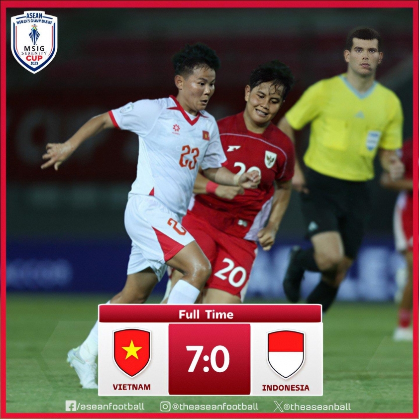 Ở lượt trận thứ hai bảng A giải vô địch nữ Đông Nam Á 2025, tuyển nữ Việt Nam tiếp tục khẳng định sức mạnh vượt trội khi vùi dập Indonesia 7-0, qua đó sớm giành quyền vào bán kết.