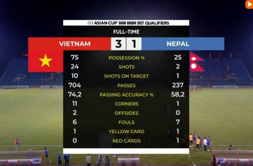 Dẫn trước an toàn, Việt Nam vẫn duy trì thế trận áp đảo và liên tục tổ chức pressing tầm cao, khiến Nepal hầu như không thể triển khai tấn công. Nếu tận dụng tốt hơn những cơ hội cuối trận, thầy trò HLV Kim Sang Sik hoàn toàn có thể giành chiến thắng đậm hơn.