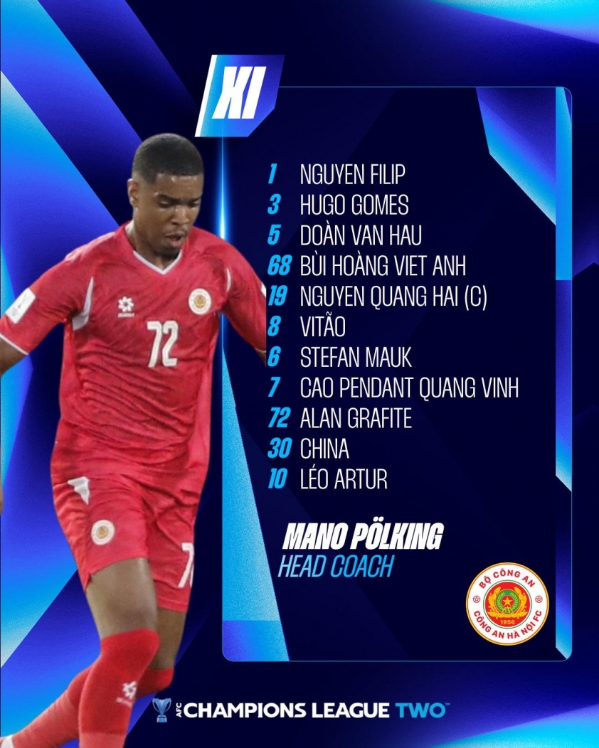 - CAHN: Nguyễn Filip, Văn Đô, Hugo Gomes, Đình Trọng, Pendant Quang Vinh, China, Mauk, Adou, Vitao, Alan, Quang Hải.