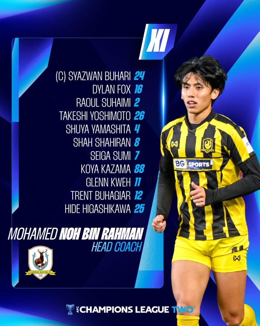 - Tampines Rovers: Buhari, Yoshimoto, Dylan Fox, Yamashita, Shahiran, Sumi, Buhagiar, Joel Chew, Kazama, Glenn Kweh, Higashikawa.