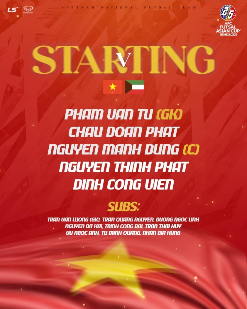 Đội tuyển futsal Việt Nam bước vào trận ra quân tại bảng B, VCK futsal châu Á 2026 gặp ĐT Kuwait.
